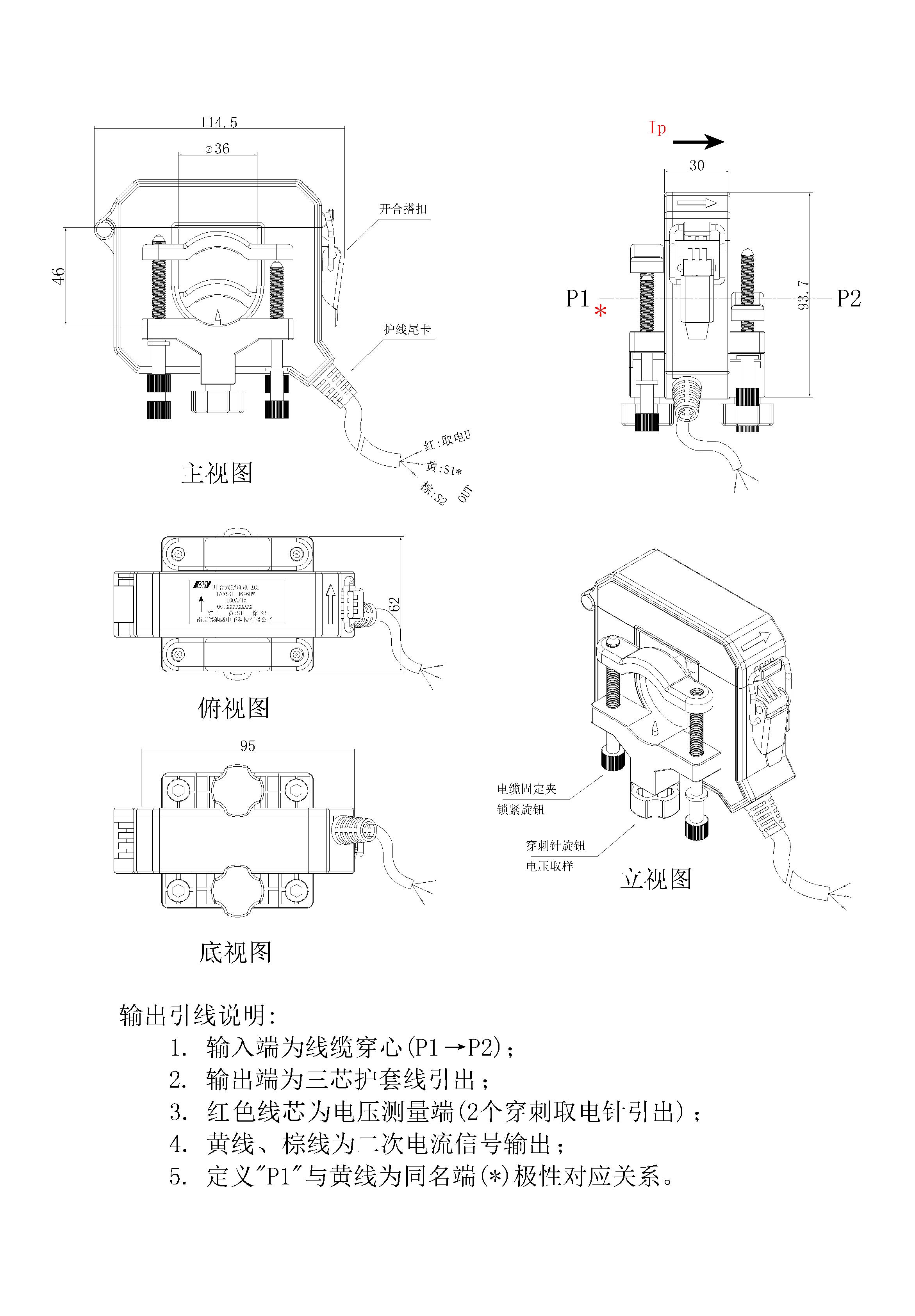 外观为双拼接颜色,可通过颜色判别安装方向和相别(A相-黄、B相-绿、C相-红)